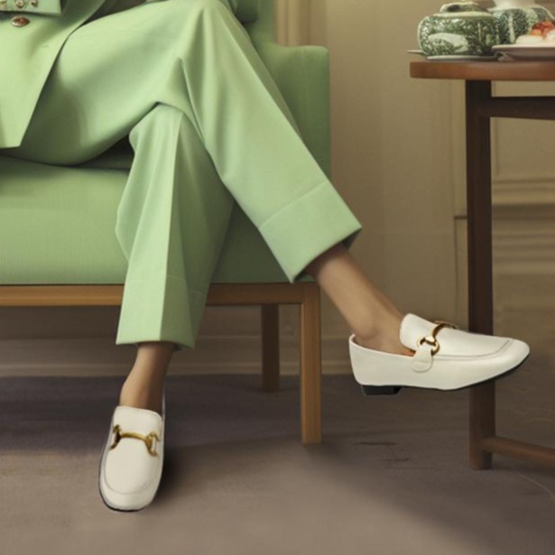 上品な印象を与えるホワイトビットローファー スーツレディースの格を上げる一足
