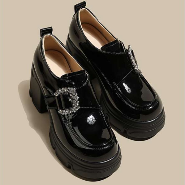 高級感のあるレザー素材を使用し、キラキラと光るバックルが目を引くローファーです。