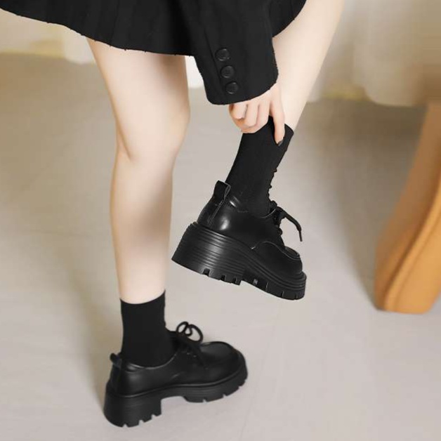 トレンドを押さえた存在感ある厚底デザインと、なめらかな質感の素材で足元に高級感を演出。