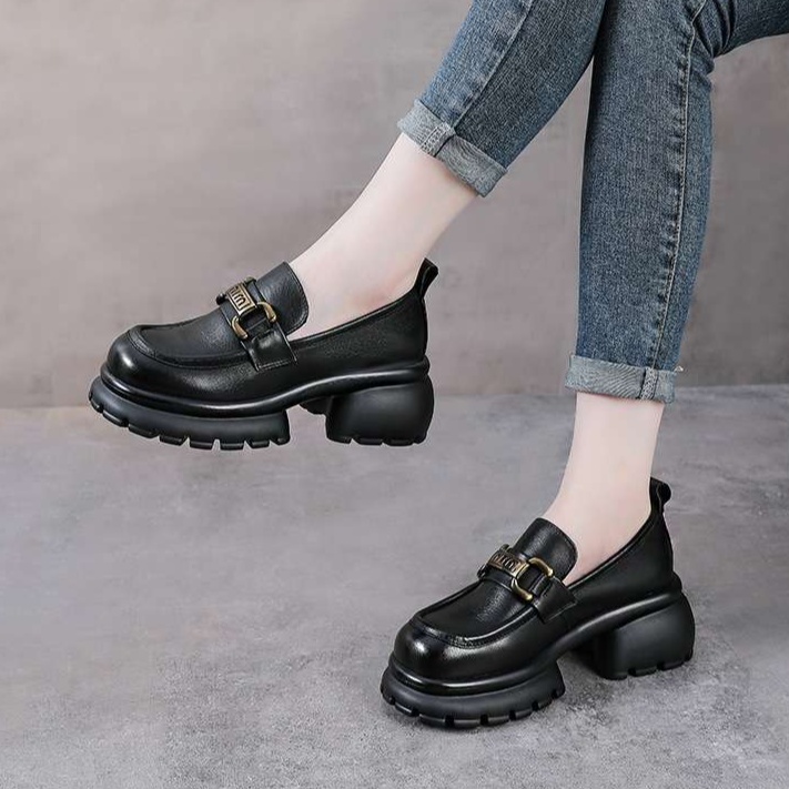 存在感抜群の厚底ローファーは、ローファーレディースにぴったりのアイテム。ゴツめのソールがスタイリッシュさを引き立て、女性らしいデザインとの絶妙なバランスが魅力です。上品な金属装飾が施されたビットと厚底ソールは、カジュアルからきれいめスタイルまで幅広く対応。快適な履き心地と安定感を兼ね備えたこの一足は、日常使いにも特別なシーンにも最適です。