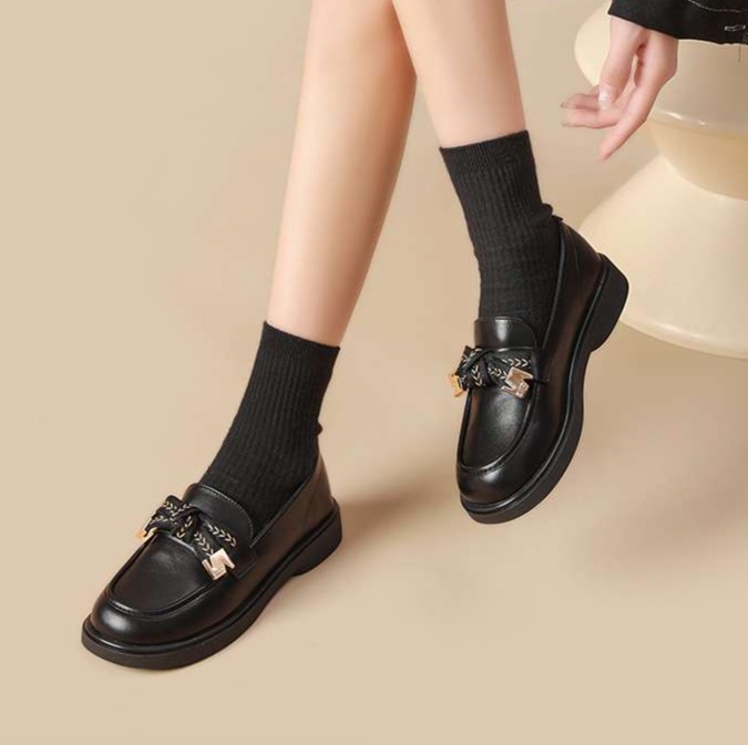 洗練されたコインローファーは、ローファーレディースの定番アイテム。クラシカルなビッドローファーデザインに、シンプルながらも魅力的なチェーン飾りを加え、高級感を引き立てます。滑らかな質感と丸みを帯びたフォルムが特徴で、どんなスタイルにもマッチする万能な一足。オフィスからカジュアルなお出かけまで、幅広いシーンで活躍すること間違いなしです。