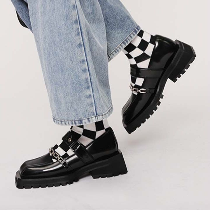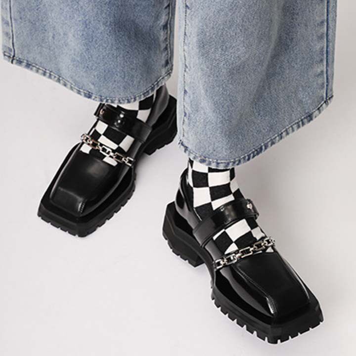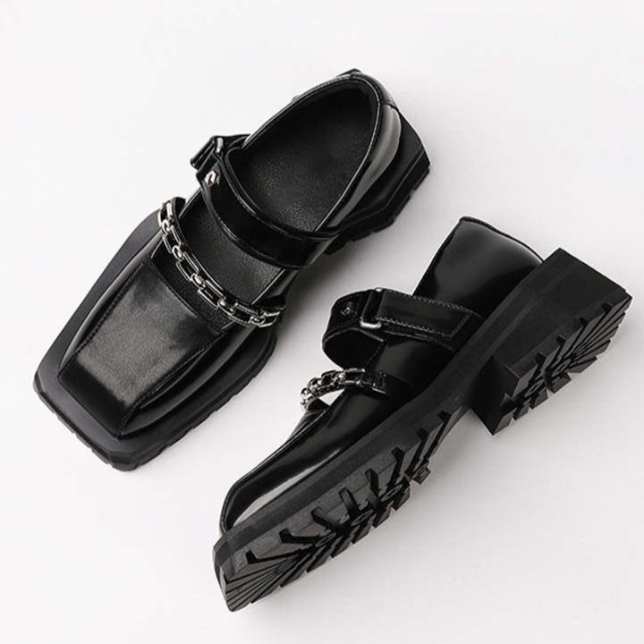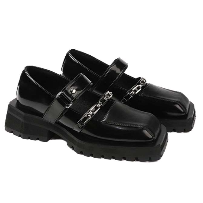 スタイリッシュなスクエアトゥデザインが特徴的な厚底ローファーです。