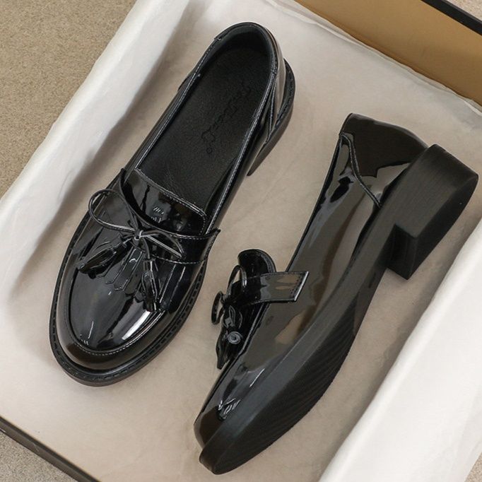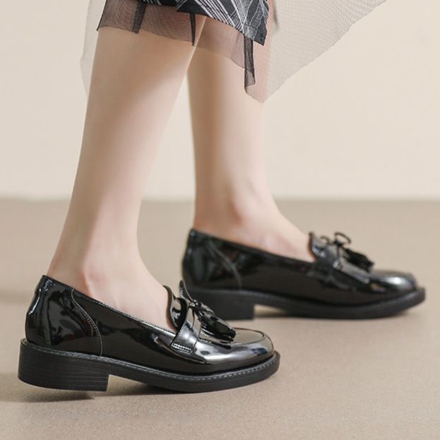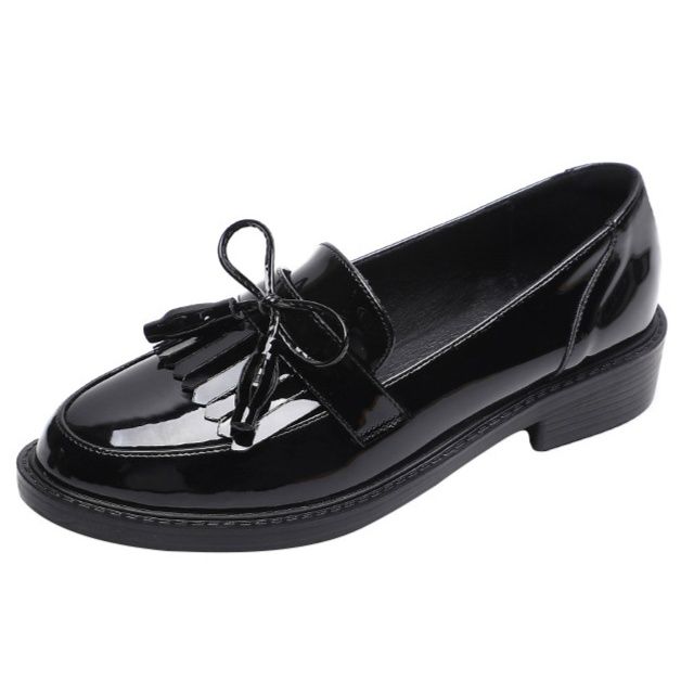 光沢のあるエナメル素材が上品な印象を与えるローファーレディースです。