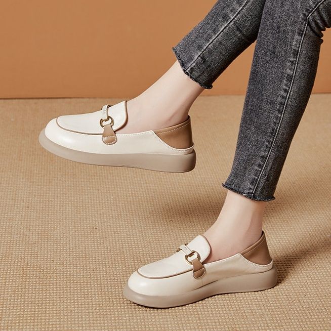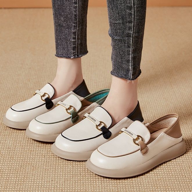 コインローファーの伝統的なデザインに厚底ソールを組み合わせることで、脚長効果と快適な履き心地を両立しました。