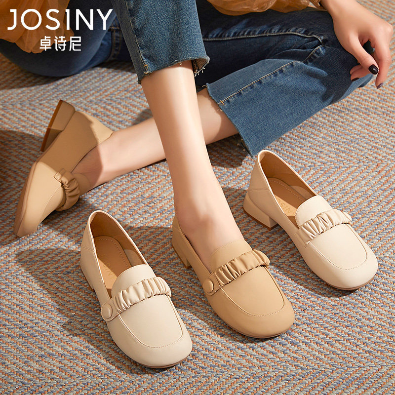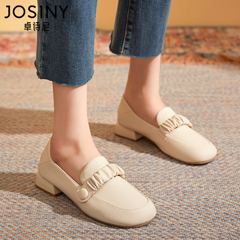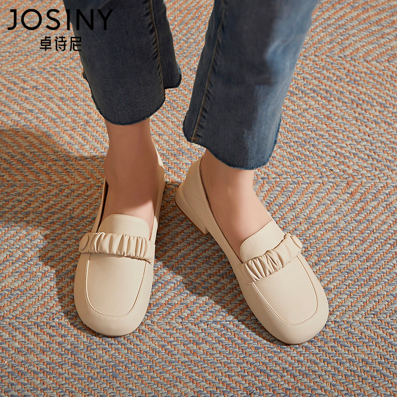 ローファーレディースらしいスクエアトゥと低めのヒールで、カジュアルからきれいめまで幅広いコーディネートに対応します。